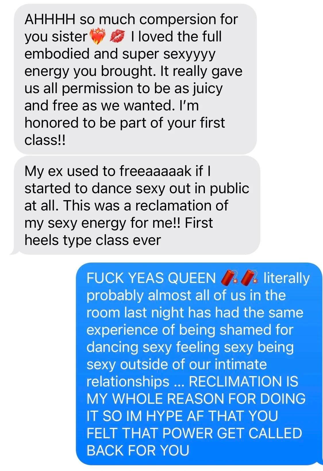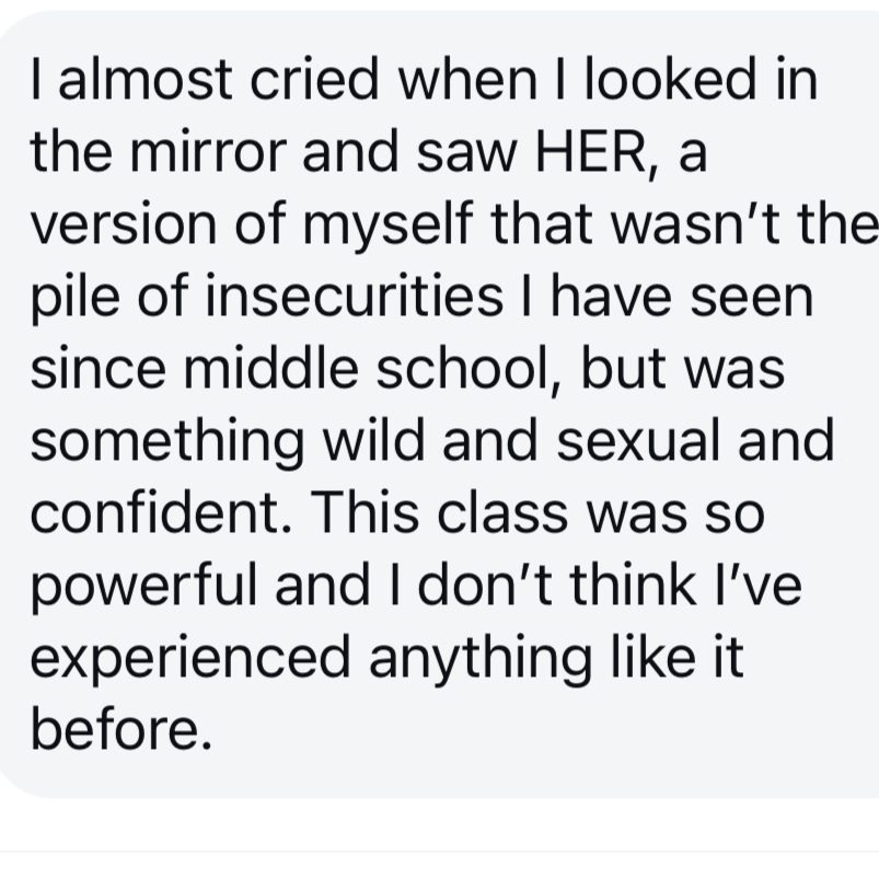 THROUGH HER LEADERSHIP WOMEN CONNECT BACK INTO THEIR HEARTS, WOMBS, AND PU$$Y. INSTANTANEOUSLY SHIFTING INTO THEIR CREATIVE POWER. SHE LEAVES AUDIENCES WITH MORE THAN INSPIRATION. THEY WALK AWAY ROOTED IN THEMSELVES, NO LONGER THINKING ONLY FROM A LIMITED PERSPECTIVE, BUT ATTUNED TO THE BOUNDLESS WISDOM ALIVE IN THEIR BODIES.